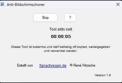 Dieses kleine Tool verhindert, dass sich der Bildschirmschoner oder der automatische Standby deines Computers aktiviert. Dafür simuliert das Programm alle 5 Minuten automatisch einen kurzen Tastendruck der